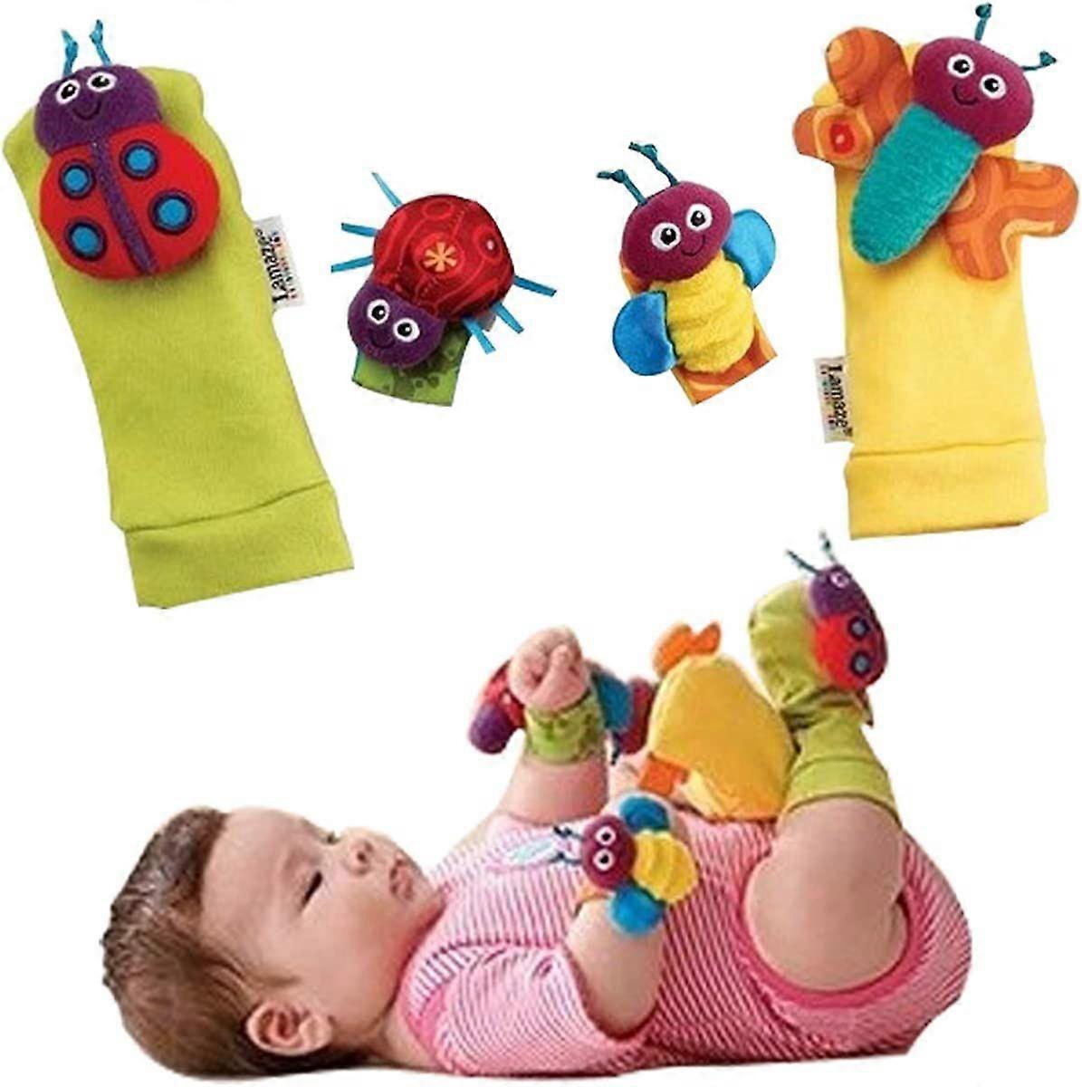 Baby Socks Toys Wrist Rattles And Foot Finders Ankle Socks Lady Bugs Set 4 Pcs