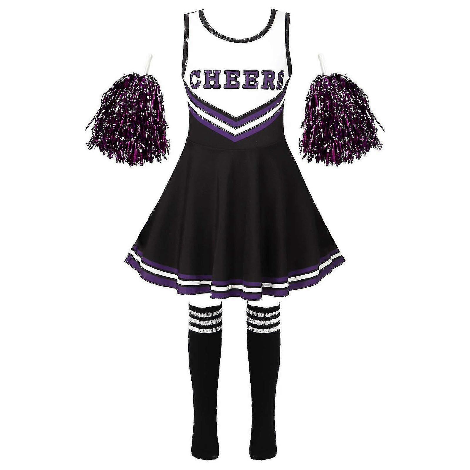 Kid Girls Cheerleading Costumes Uniform Sleeveless Letter Print Dance Cosplay Roleplay Dress With Socks For Stage Performance Fi