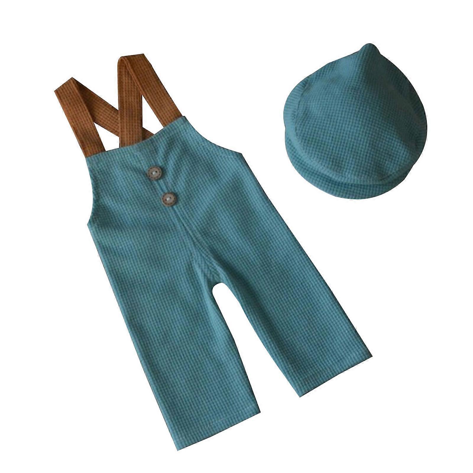 Newborn Baby Photo Shoot Props Girl Boy Overalls with Hat set Newborn Hat Pants set Photo Shoot Props Lovely Clothing Light Green