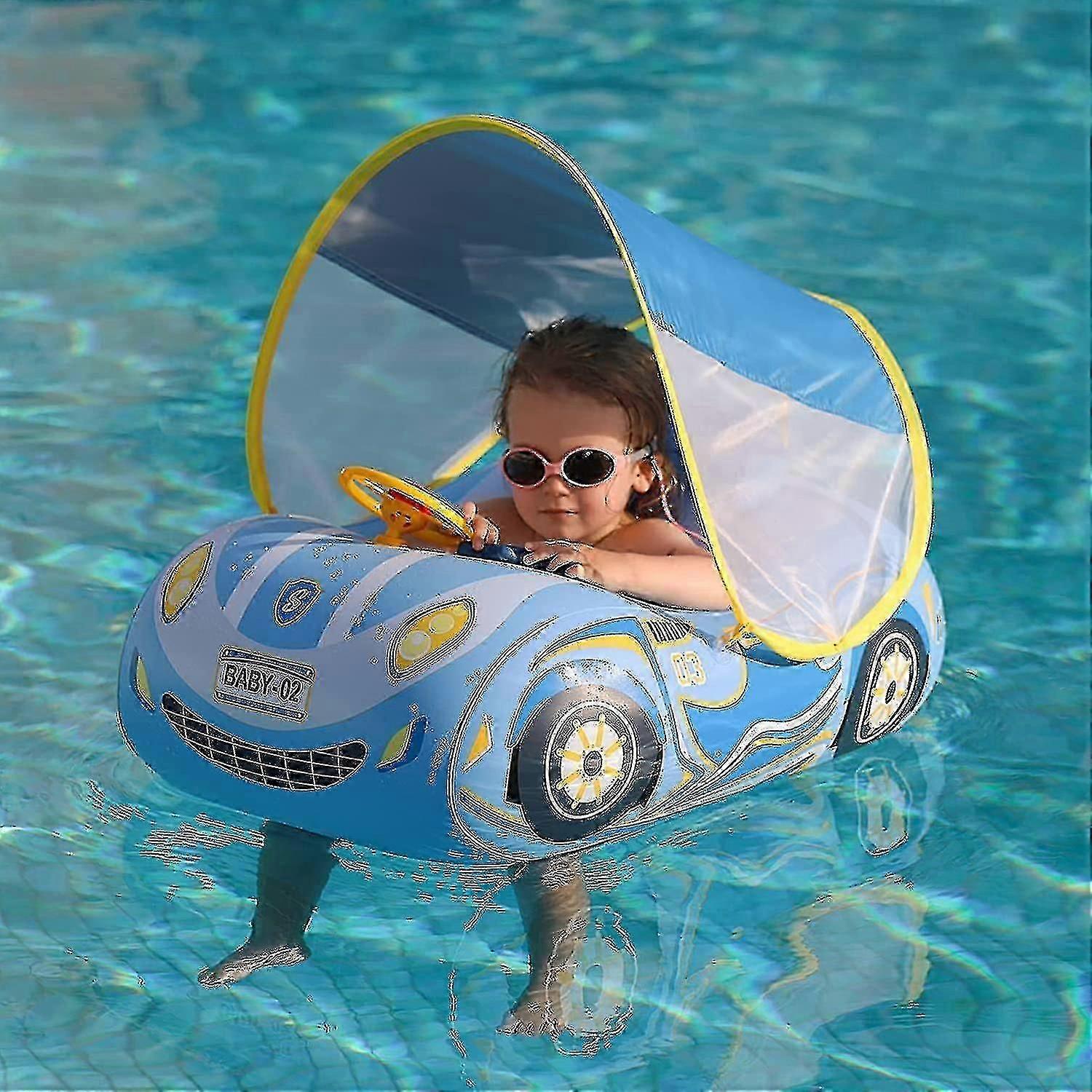 Toddler Pool Float Inflatable Car Baby Swim Float With Adjustable Sun Canopy And Safety Seat Pool Toys For Kids 1-4 Years Old