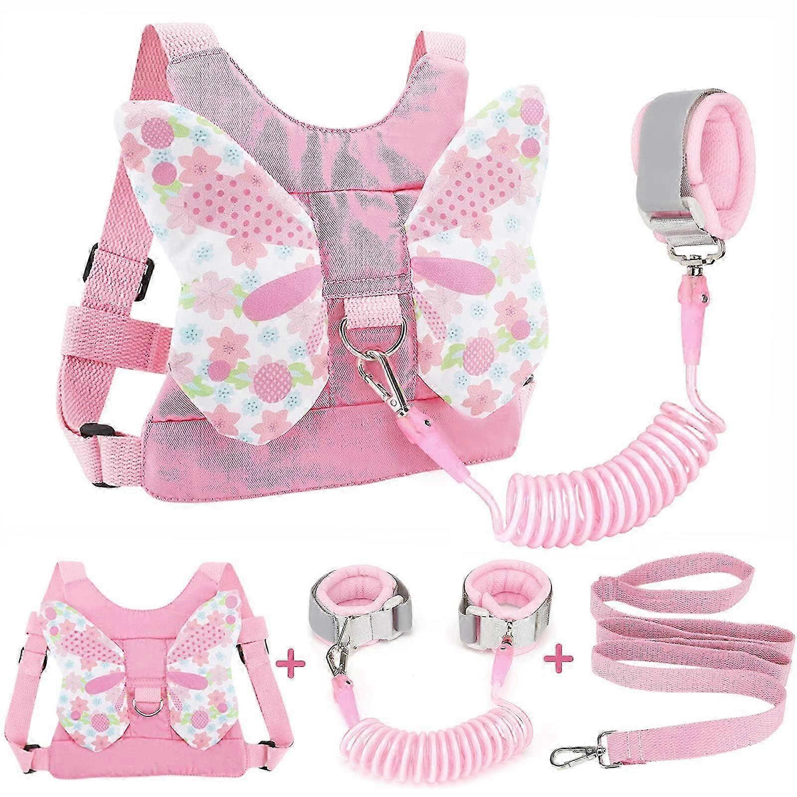 Toddler Harness Leash + Anti Lost Wrist Link, Kids Butterfly Harnesses With Children Leashes, Cute Baby Leash Walking Assistant Wristband Strap