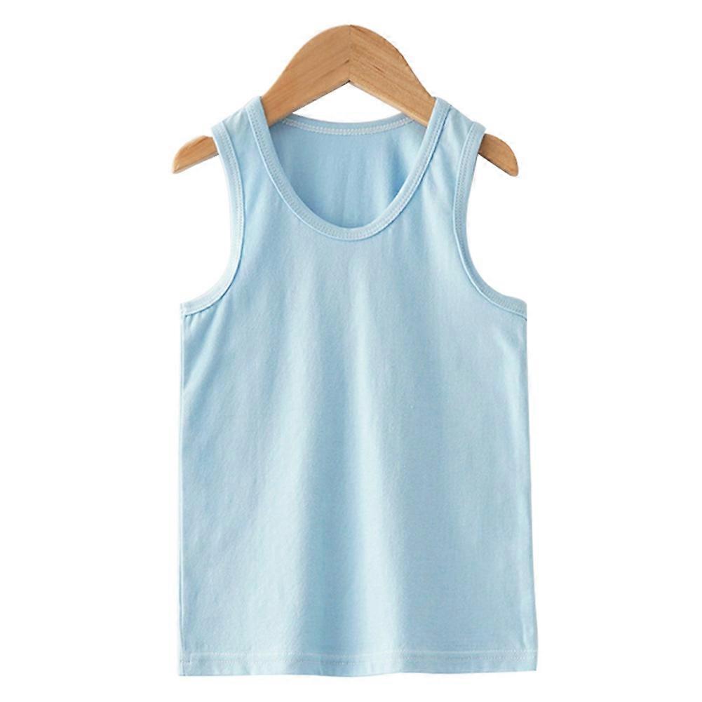 Child Kid Boy Solid Color Sleeveless Round Neck Vest Summer Spring (Blue 100)