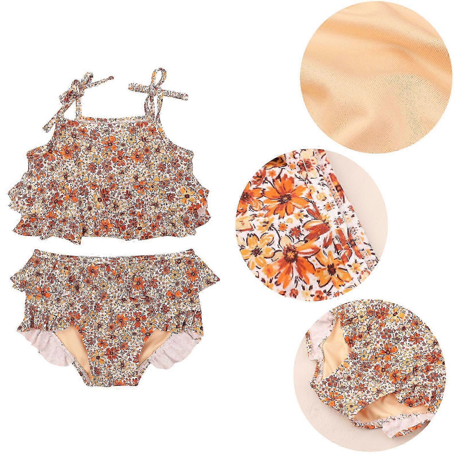 Baby 2 Pieces Set Swimsuit UPF50+ Toddlers Sleeveless Swimwear Baby Girls Bikini Set Infants Split Bathing Suit