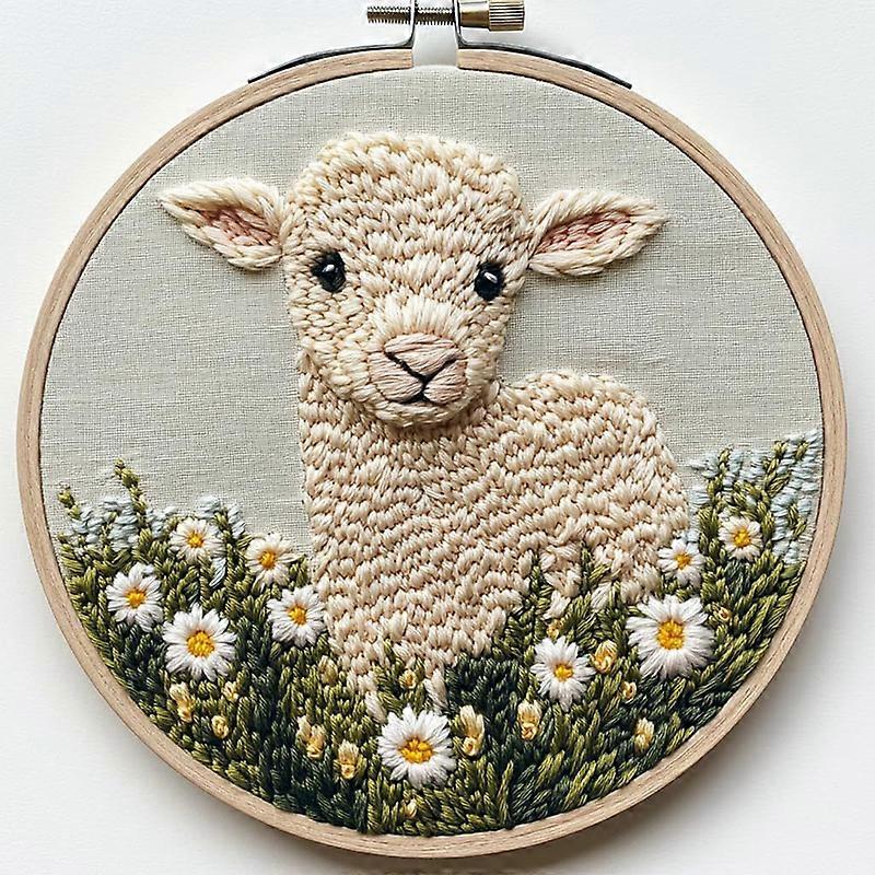 Beginner Embroidery Kit Cow Daisy Flower Embroidery Punch Needle Kit Colorful Handmade Craft Set Includes Embroidery Hoop Cloth