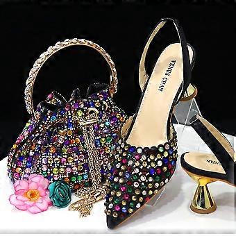 طقم أحذية وحقيبة بتصميم إيطالي بألوان جذابة متطابقة - أحذية سيدة يدوية عالية الجودة و