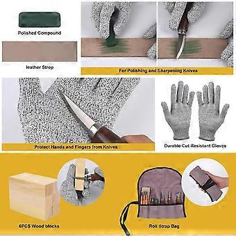 Wood Carving Tools Kit 21PCS Wood Whittling Kit for Kids and Adults Beginners,6PCS Whittling Knife and 9PCS Basswood Carving Blocks, Gloves, Roll Bag,