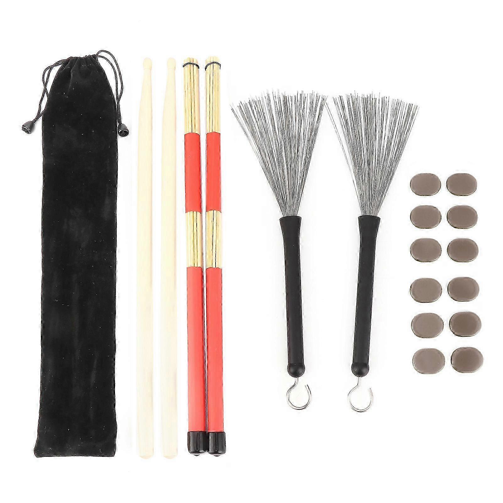 Drumstick Kit Rute Brush Damper Drum Set Musical Instrument Playing Accessories with BagM02762 Coffee Color