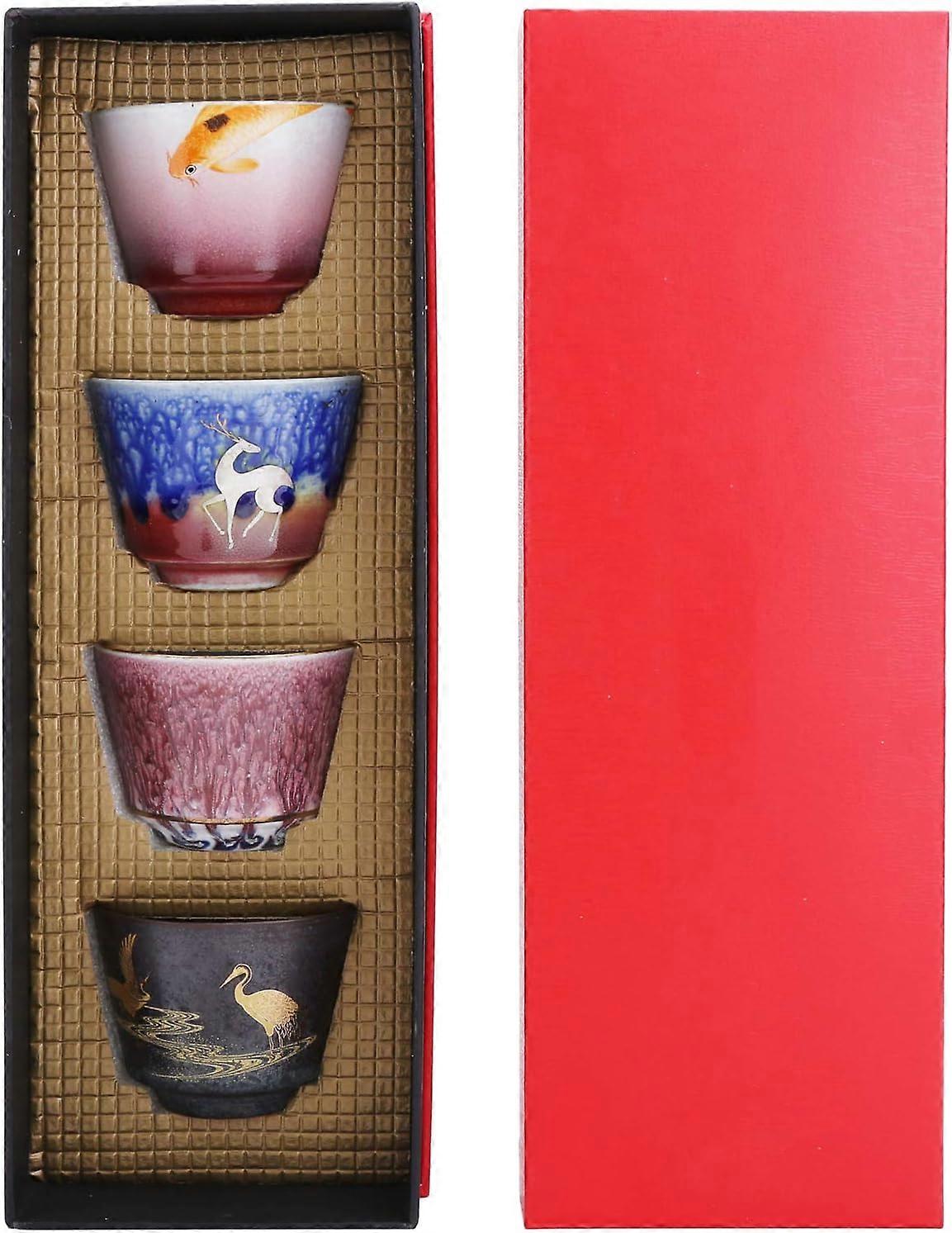 4-Piece Handmade Japanese Ceramic Tea Cup Set for Home and Gift