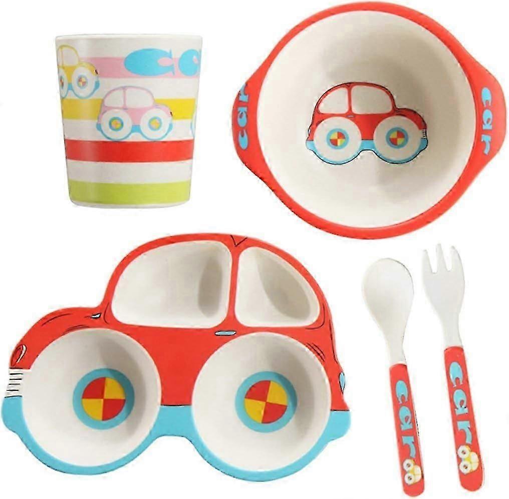 5-Piece Bamboo Kids Dinnerware Set - Eco-Friendly, Dishwasher Safe - Perfect Gift