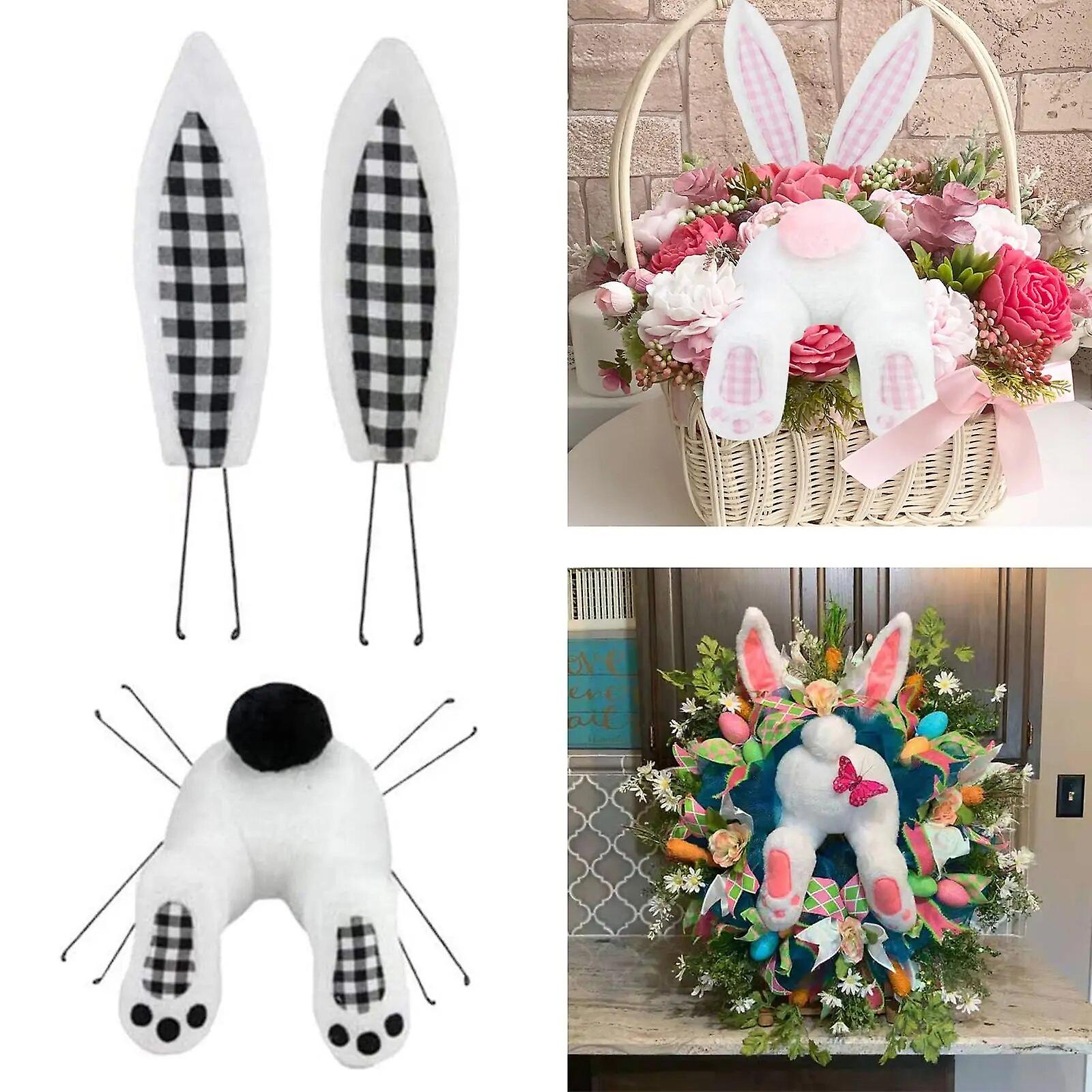 Wall Hanging Easter Bunny Wreath Kit Cute Welcome Sign Rabbit Wreath Attachment for Festival Front Door Decor Window Holiday