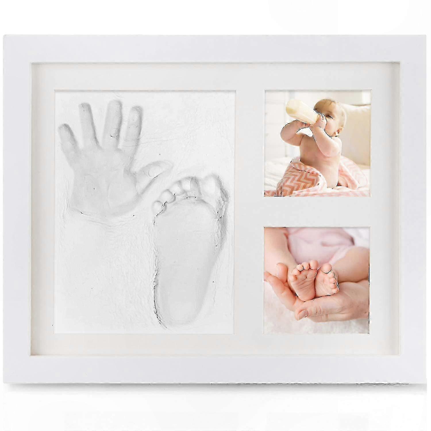 Baby footprint set – Create a lasting memory of your little one’s handprint and footprint with this keepsake kit. This thoughtful gift is ideal for baby showers or baby registries. The frame is crafted from natural wood, and the plaster casting material is non-toxic and acid-free, ensuring it is completely safe for infants. To use: Remove the modeling compound from the airtight packaging and knead until pliable. Spread evenly into the mold using the included wooden roller. Gently press your baby’s hand or foot into the mixture. Allow sufficient drying time, then insert photos into the frame. The finished piece holds one 12 x 16 cm (4.72 x 6.30 inch) hand and footprint impression and two 7 x 7 cm (2.75 x 2.75 inch) photo slots. This elegant frame serves as both a cherished family memento and a decorative piece for your home – perfect for display on a wall or tabletop. Includes: 1 x hand and foot print plaster cast set, 3 x impression compound packs, 1 x wooden roller tool.