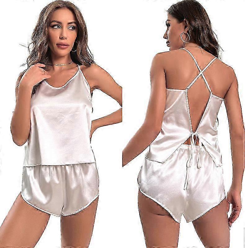 Silk Pajamas Set for Women Satin Backless Lingerie Pajamas