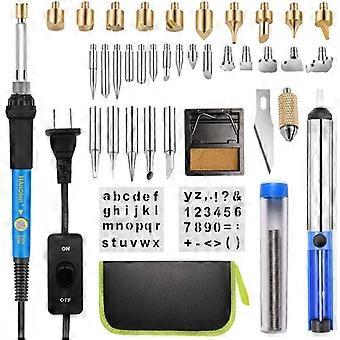 طقم بيروغرافي 54 قطعة بيروغرافيا على خشب 60 واط درجة حرارة قابلة للتعديل 200-450 درجة مئوية - للخشب والجلود والنحت والبيروغرافيا على الخشب ، DIY
