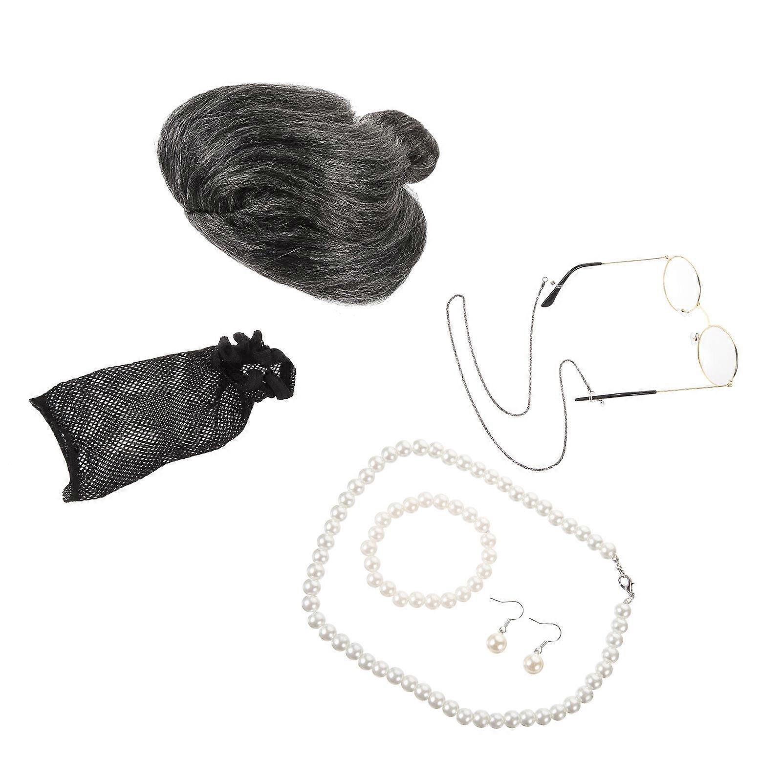 Old Lady Costume Cosplay Kit with Grey Wig for Party, Masquerade, and Daily Fun – Unisex Accessory Set for Women and Men