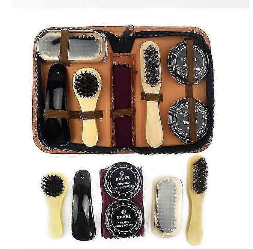 Shoe Shine Kit with Stylish Leather Case, 8-Piece Travel Shoe Shine Kit-Yvan