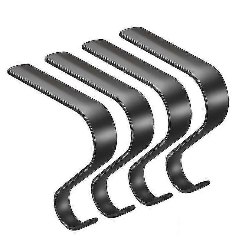 Christmas Stocking Holder Set - Metal Mantel Holders & Garland Cloak Grip for Holiday Decorations (Black, 4 Pcs)