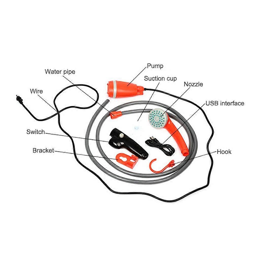 Outdoor Portable Camping Shower Kit with 2.5-3.5L/min Water Discharge 2m Hose USB Charging 30-60min Battery Life Zipper Bag Camp Shower