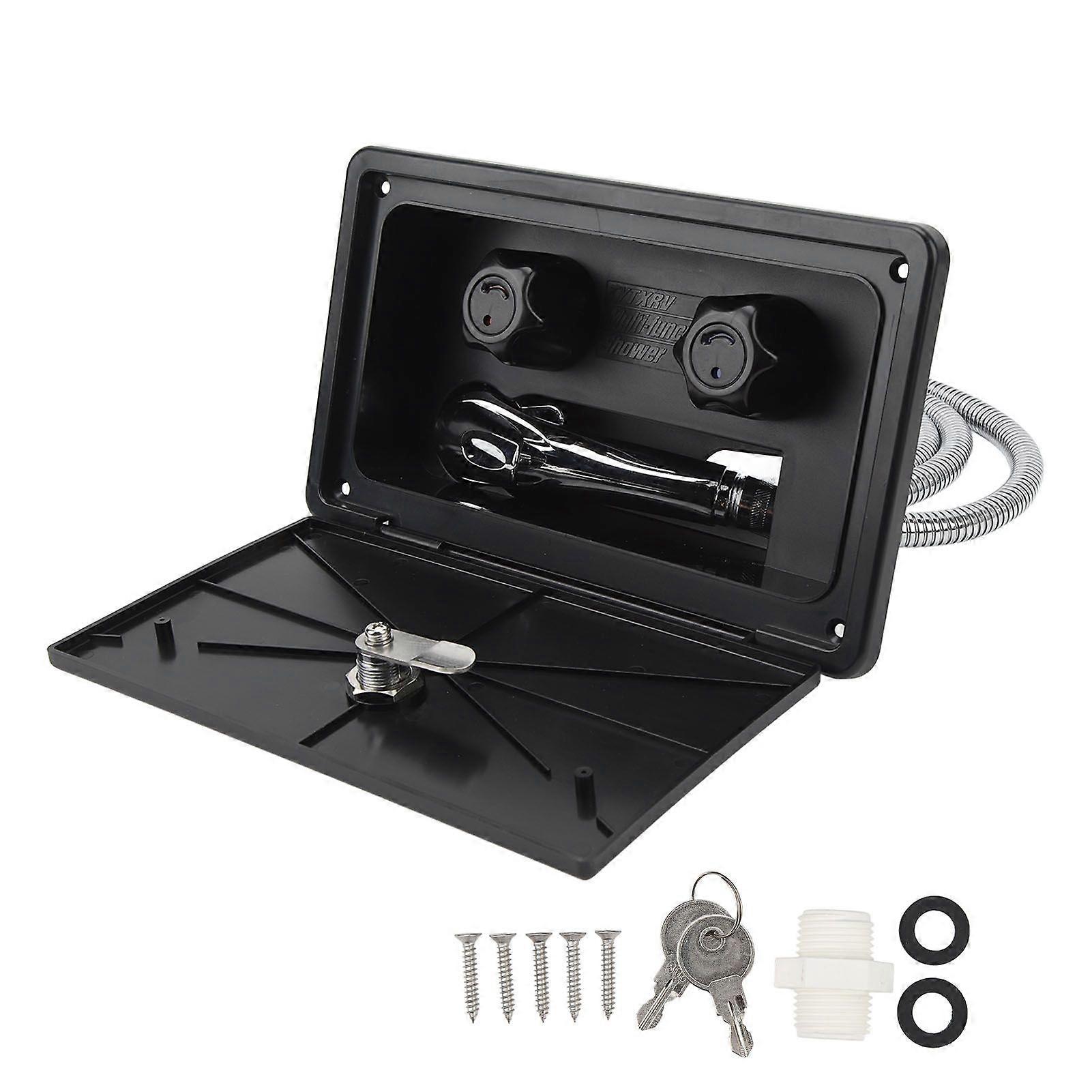 Exterior Shower Box Kit 1.5m Metal Hose Outdoor Washing Spray Box Set for Rv Campervans Trailer Boats Caravans Yachts Black with Metal Tubes