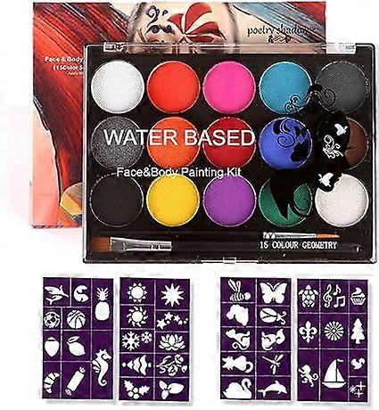 Face Paint Kit, 15 Color Face Painting Palette with 2 Brushes 4 Stencils, Washable Safe Body Paint for Adults Kids
