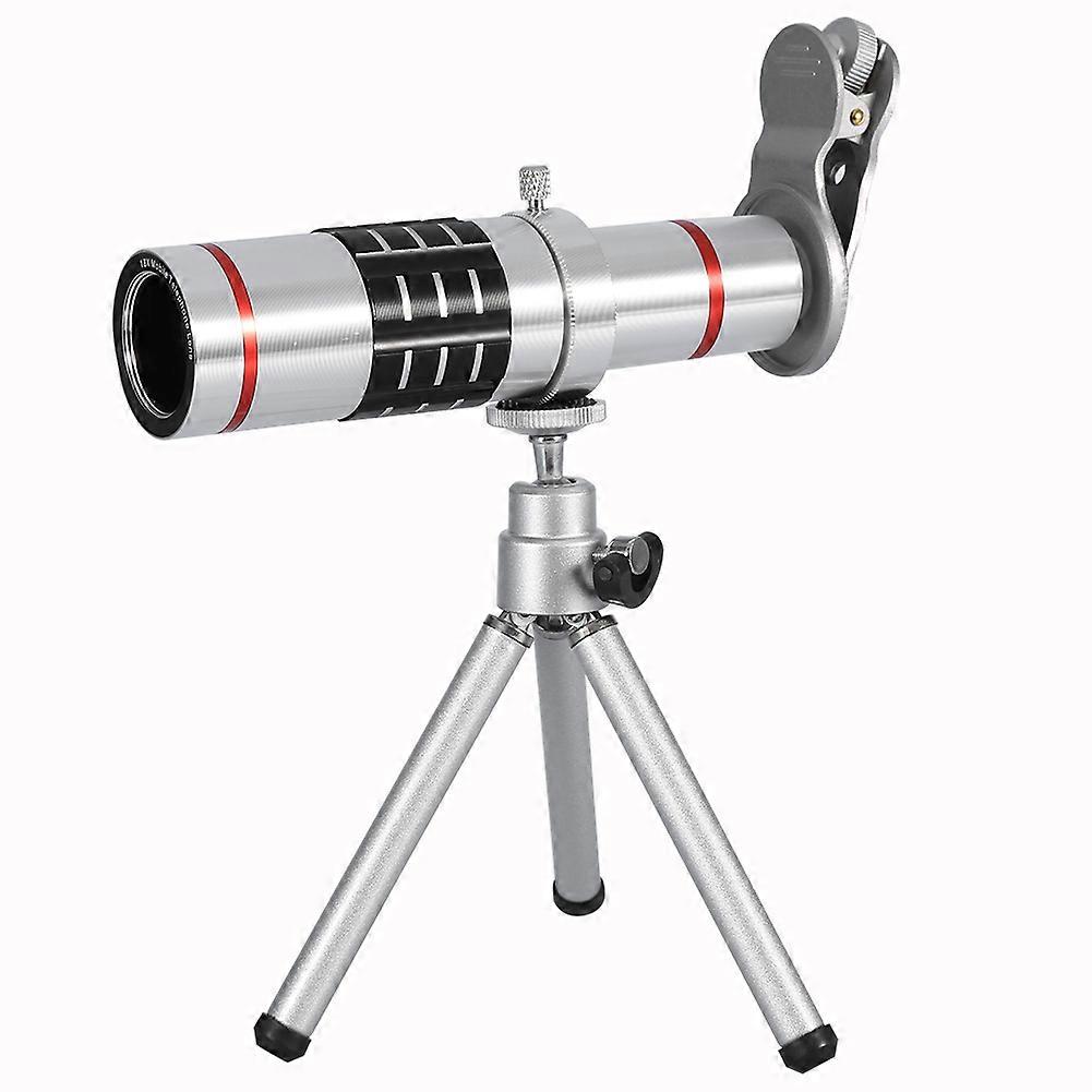 Phone Camera Lens Kit Universal 18X Optical Zoom Telephoto Telescope Lens with Tripod Silver