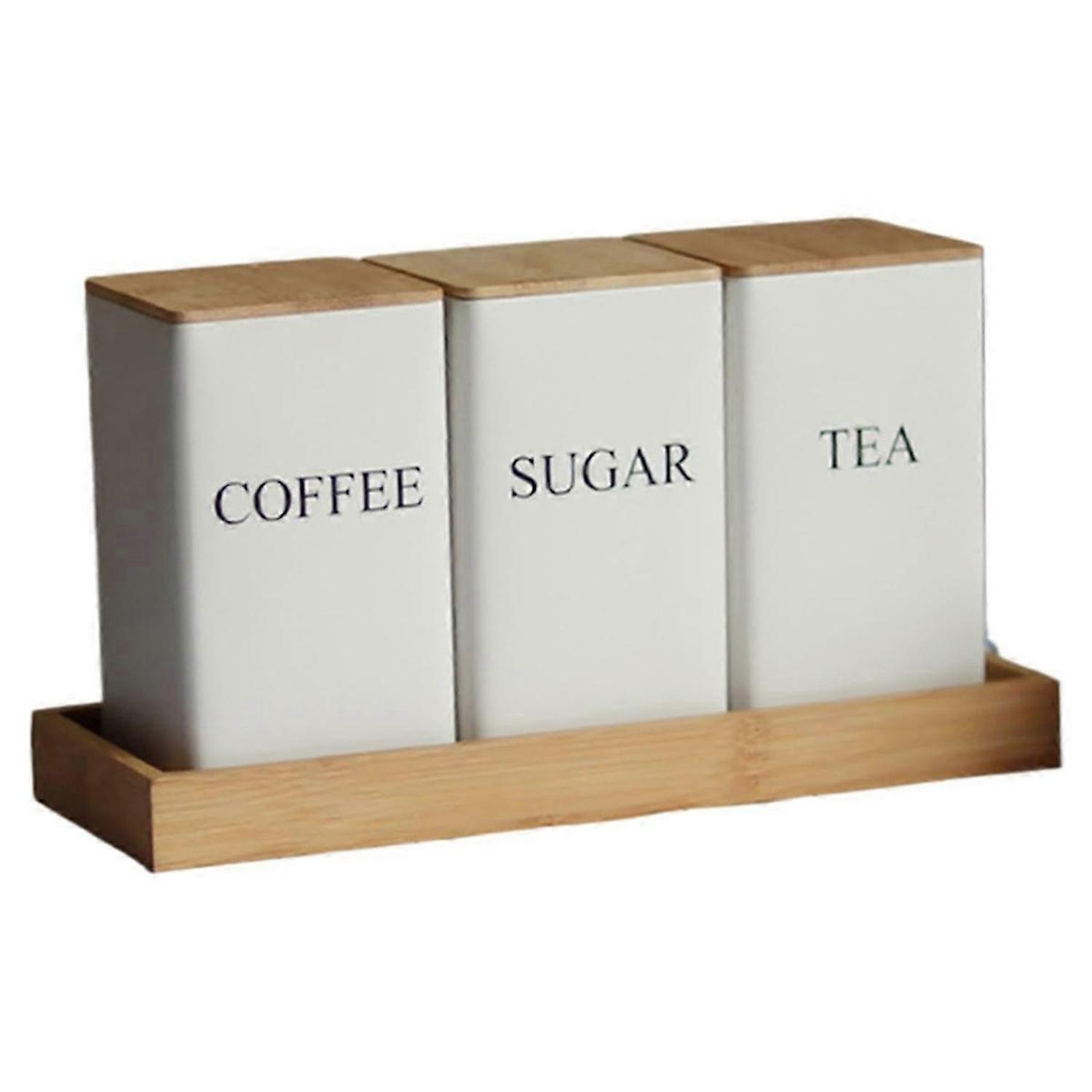 Tea Coffee Sugar Canister Set with Tray Iron Tea and Coffee Jars B