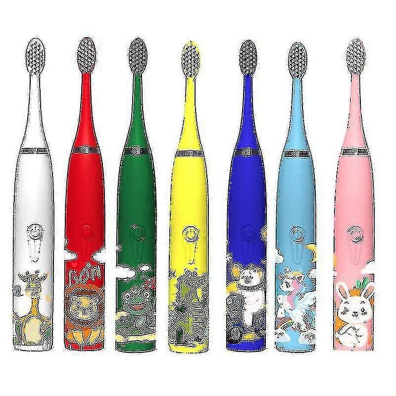 Kids Electric Toothbrush Set, 6 Brush Heads, Sonic Vibration, USB Charging, Waterproof