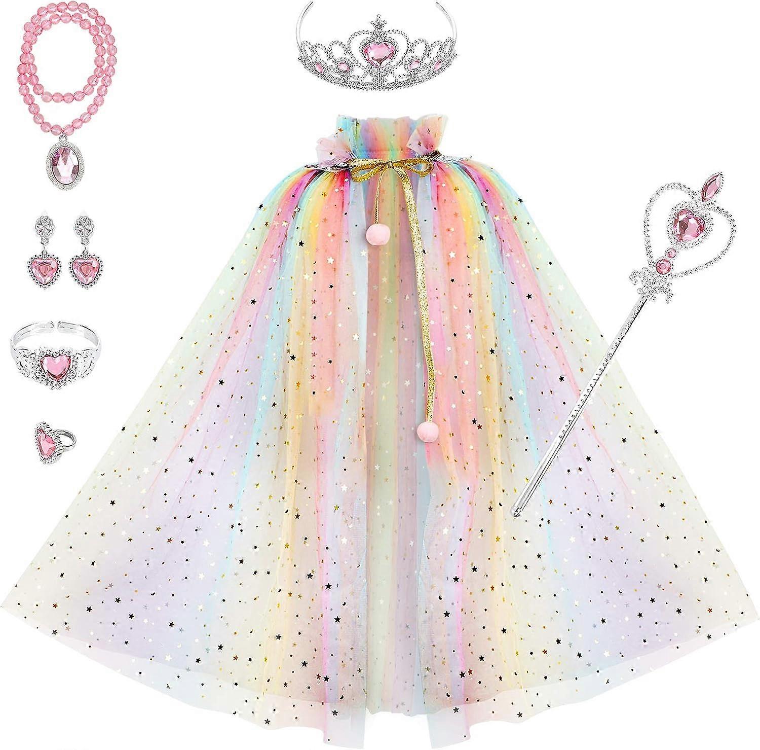 Princess Cape Set 7 Pieces Girls Princess Cloak with Tiara Crown Wand for Little Girls Dress up
