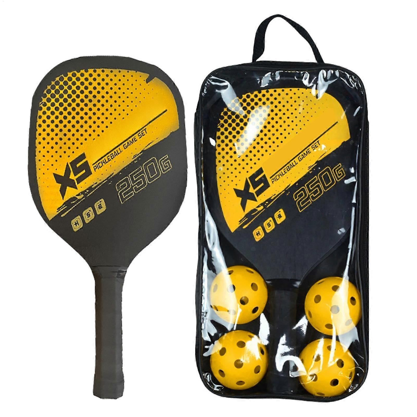 Pickle Ball Paddle Set, 4 Balls, 2 Bats, Comfort Grip Indoor Outdoor Yellow