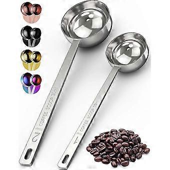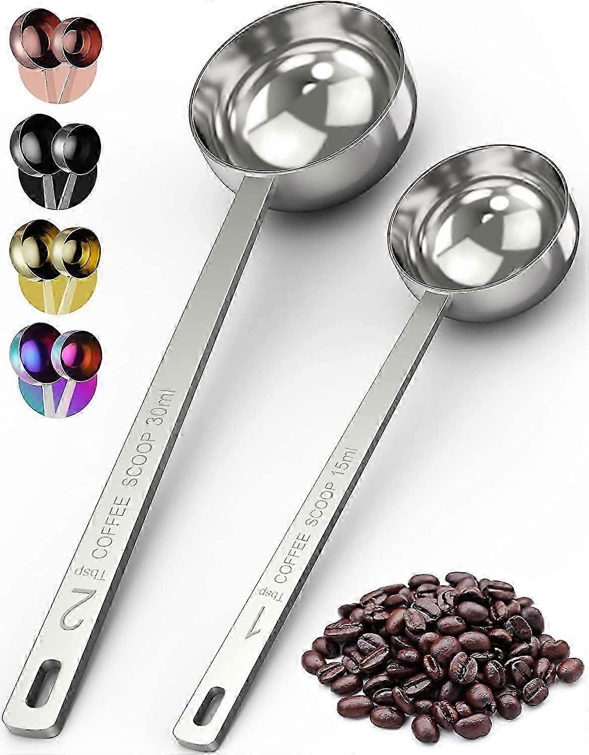Stainless Steel Ground Coffee Scoop Set - 2 Sizes, Extra Long Handle - Coffee Scoop and Coffee Measuring Spoon for Ground Coffee