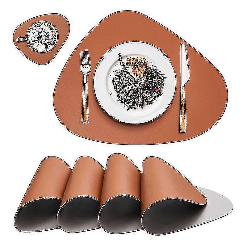 Placemat and Coaster Set, 4 Pieces, Brown + Grey, Non-slip, Heat-resistant and Easy to Clean