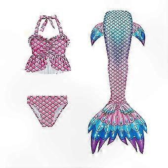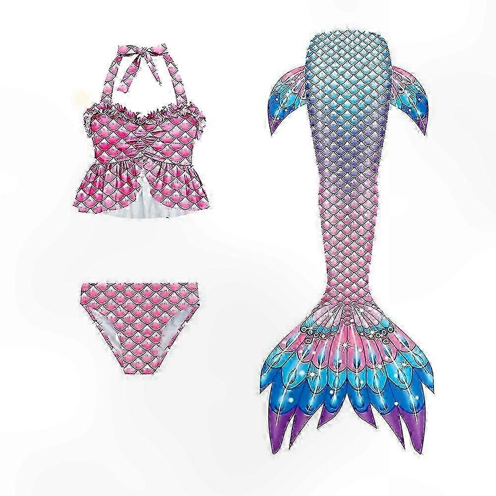 Mermaid Tail Swimsuit Set for Girls - 3pc Beach & Pool Costume Bikini