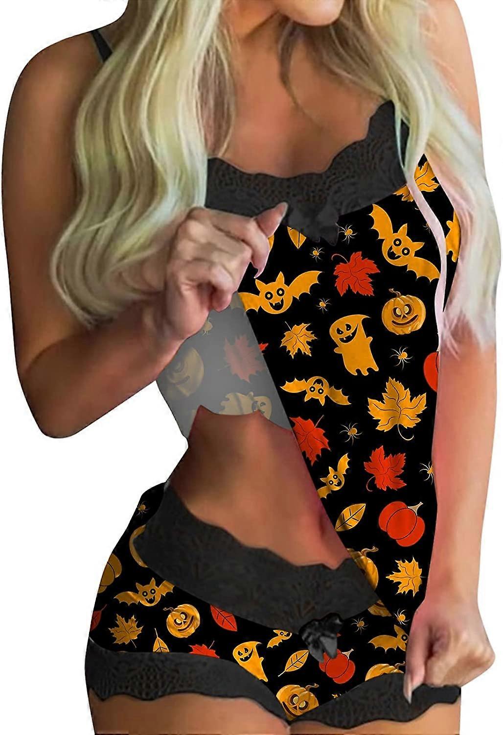 Lingerie Set for Women Two Piece Lace Trim Cami Top Shorts Set Pajamas ValentineS-3XL