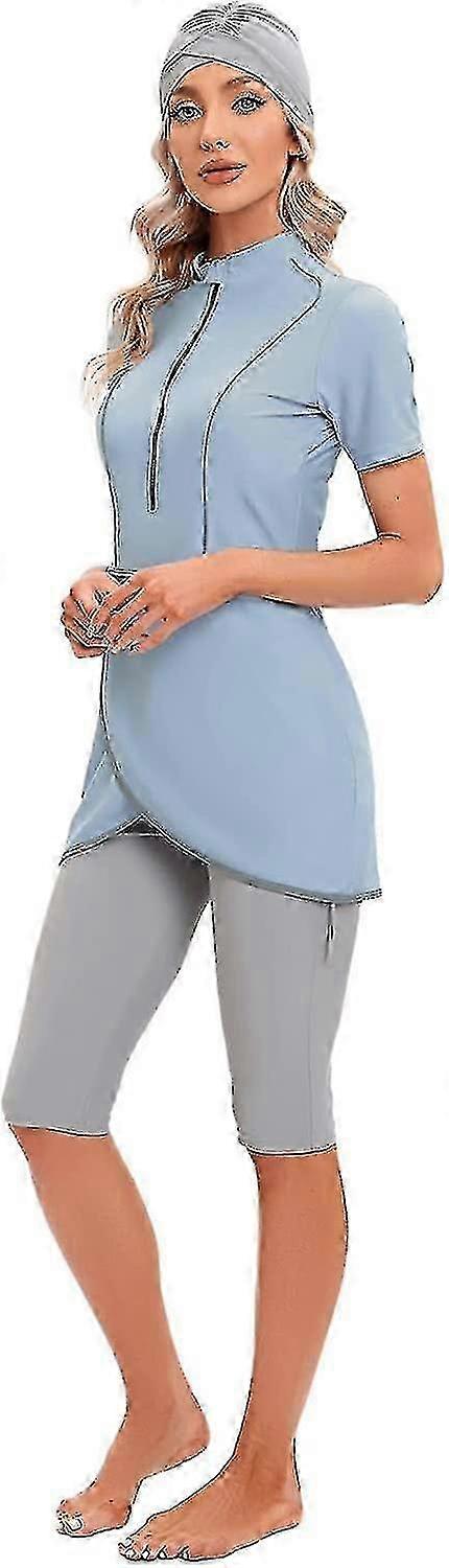 Modest 3-Piece Swimwear Set for Islamic Women - Short Sleeve Top, Shorts, Hijab (Sizes S - 4XL)