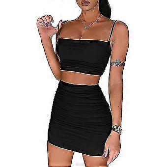 Womens 2 Piece Outfits Set Ruched Cami Crop Top Bodycon Skirt Mini Club Dress