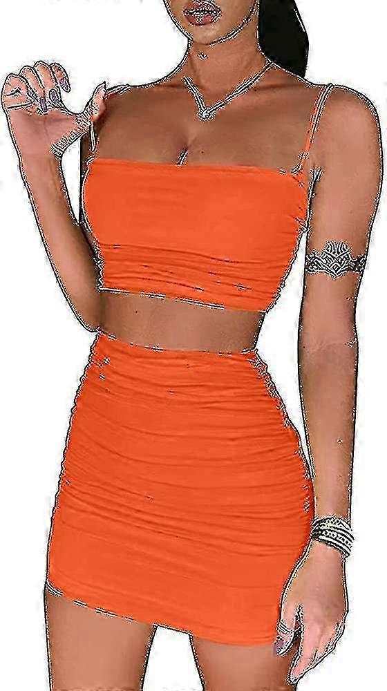 Womens 2 Piece Outfits Set Ruched Cami Crop Top Bodycon Skirt Mini Club Dress