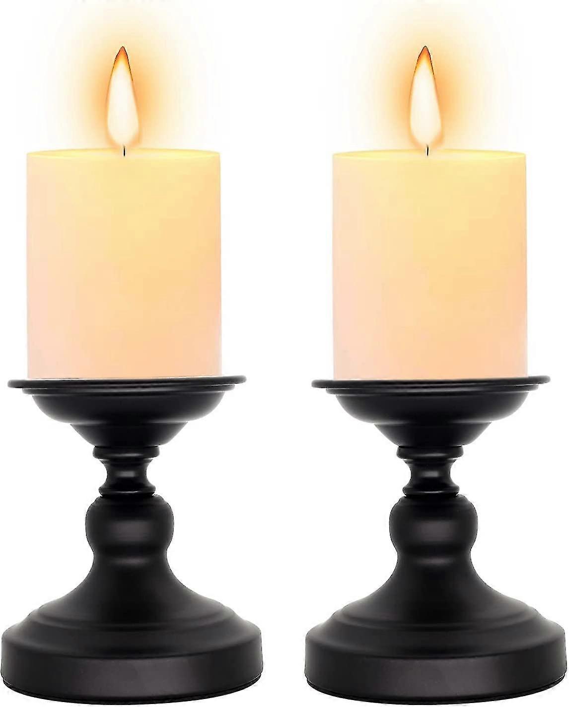 Set Of 2 Matte Black Metal Pillar Candle Holder - Candlestick Holders, Ideal For Home Coffee Table Decor Decorations, Centerpiece For Dining/ Living R