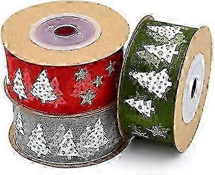 Set of 2 Christmas Ribbon Sequins Design Christmas Elements 2.5cm x 5 m (Grey,Green)