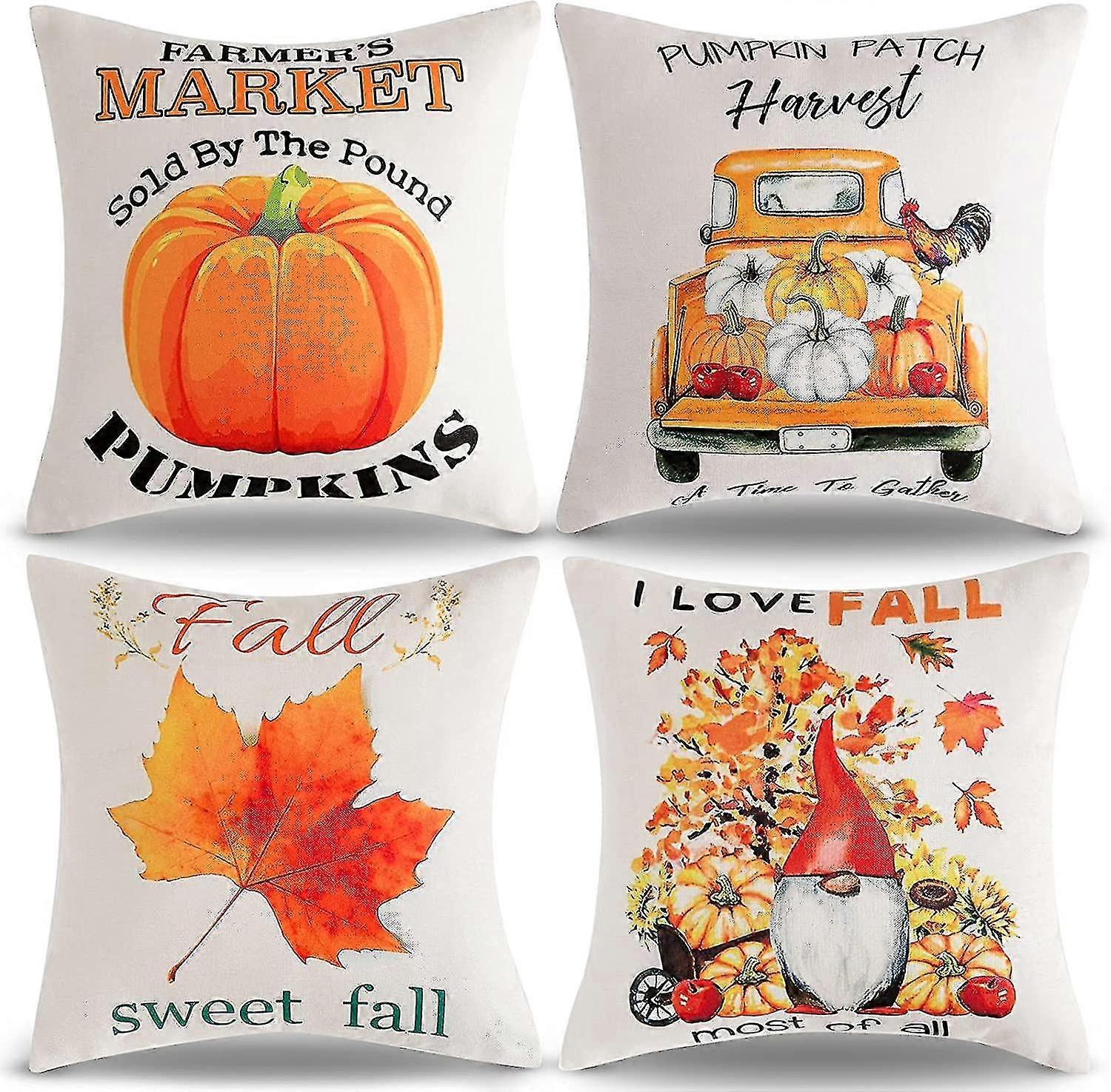 HIGH QUALITY MATERIAL: Fine quality durable linen texture, soft and comfortable feeling. It has elasticity, no pilling and no stimulation to the skin. Please note that it only comes with the pillowcases. Pillows are not included.HIGH QUALITY MATERIAL: Fine quality durable linen texture, soft and comfortable feeling. It has elasticity, no pilling and no stimulation to the skin. Please note that it only comes with the pillowcases. Pillows are not included.PERFECT DECORATION: As a unique home decoration, these square pillowcases are a great addition to your living room and bedroom and also make a perfect gift for festivals , parties, housewarmings and many other occasions, both indoors and outdoors.SUITABLE SIZE AND PACKAGING:Our fall pumpkin style throw pillow cover measures 45 x 45cm (18"x18"), this size is suitable for most sofas or hanging chairs, you don't have to worry about the size which makes your home more beautiful. Pack of 4 pillowcases without pillow inserts. We want our customers to be 100% happy and satisfied, so they can buy with confidence.KEYWORD:decorative cushions,45x45 cushion,cushion for sofa,linen cushion,living room cushion,cushion case, Decorative cushion, living room cushion, cushion cover, sofa cushion, design cushions, Halloween cushion cover.