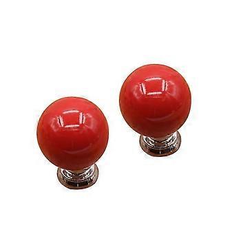 طقم من 2 مقابض أبواب سيراميك دائرية للخزائن والأدراج - أحمر، 3.7 سم، سهل التركيب مع البراغي