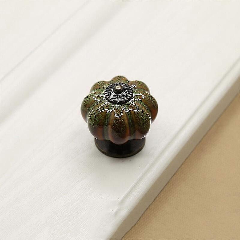 Set of 2 Pumpkin Drawer Knobs, Vintage Furniture Handles 3.8 x 4.0 cm, Ceramic Knob with Green Leopard Print (Screws Included)