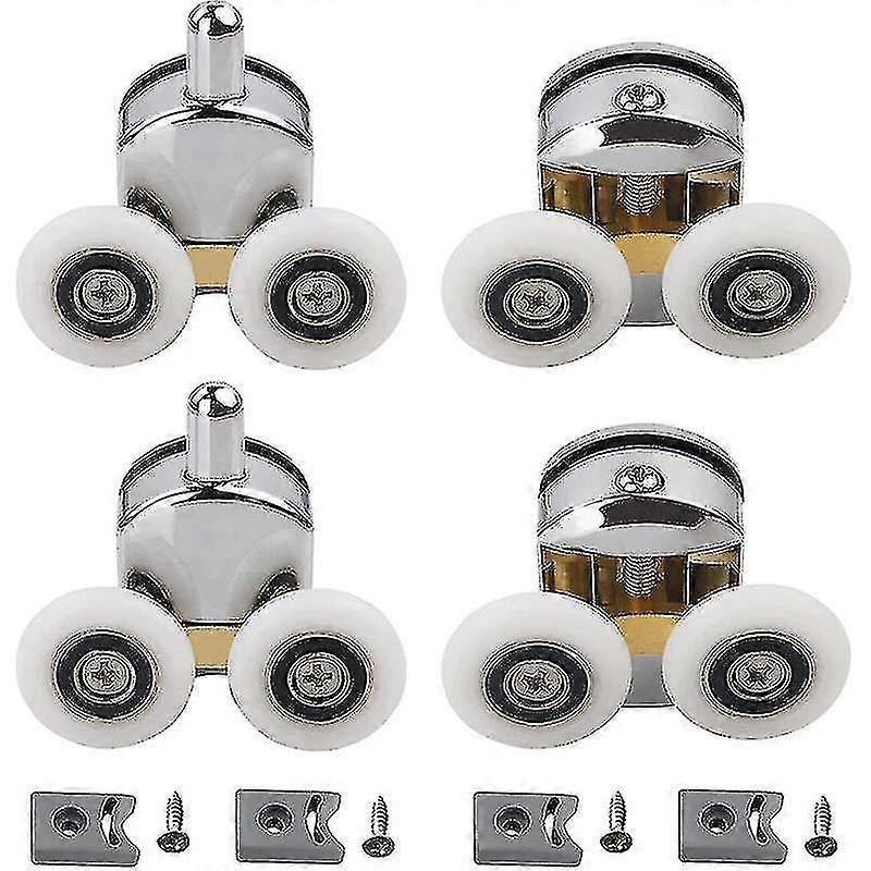 Set Of 4 Double Casters - For Sliding Shower Door, 2 Wheels 23mm Diameter Zinc Alloy Bathroom