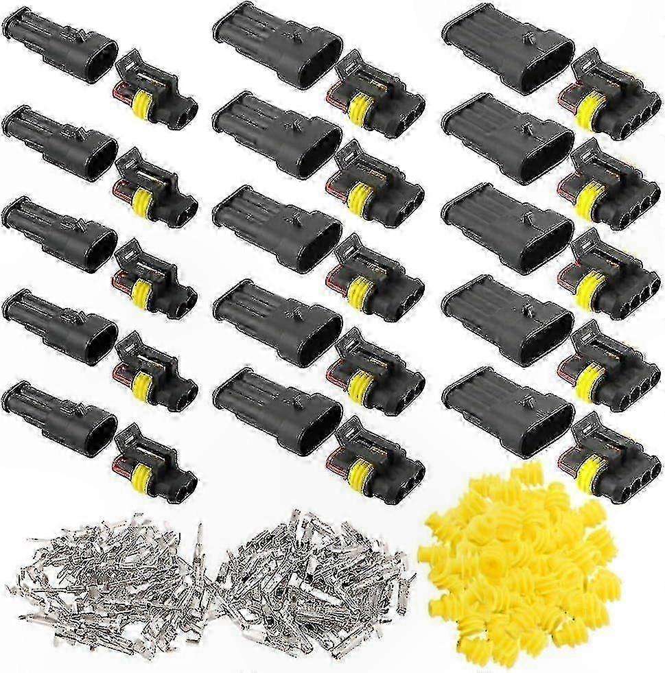15-Piece Waterproof Electrical Connector Kit for Automotive and Marine Use (2-Pin & 3-Pin Terminals Included)