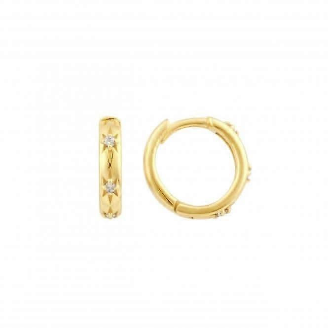 Star set Zirconia Huggie Gold Plated 13mm Hoop Earrings 56852GCZ