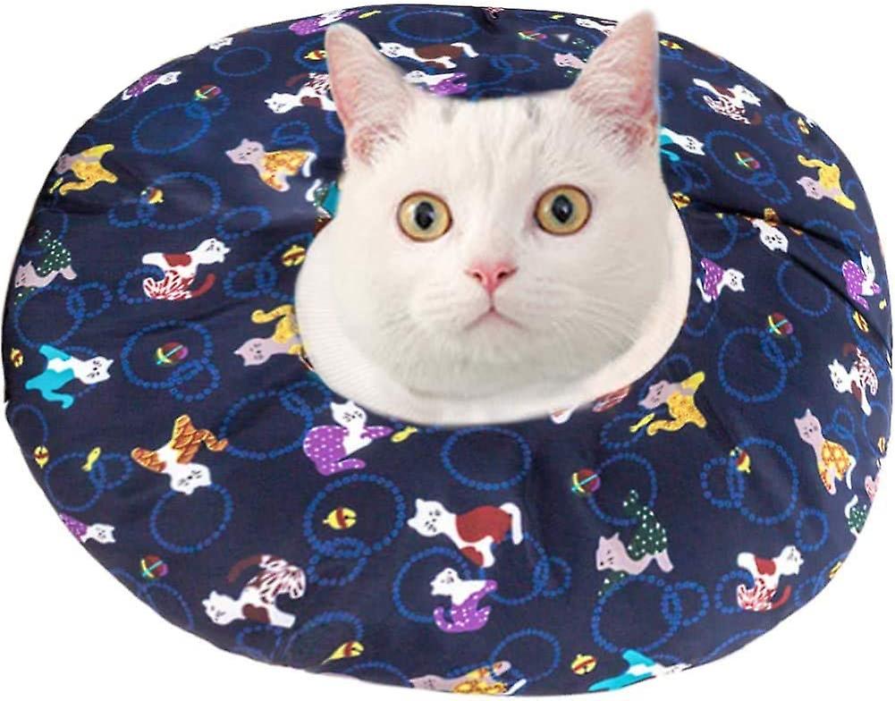 Adjustable Recovery Cone Neck Collar Soft Elizabeth Circle Removable Washable Cover for Dogs Cats (Navy, Medium)