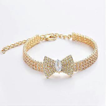 Crystal cat collar with rhinestones and glittering bow, shiny, adjustable pet collar for small pets, cats, dogs, gold S (neck 2028cm)