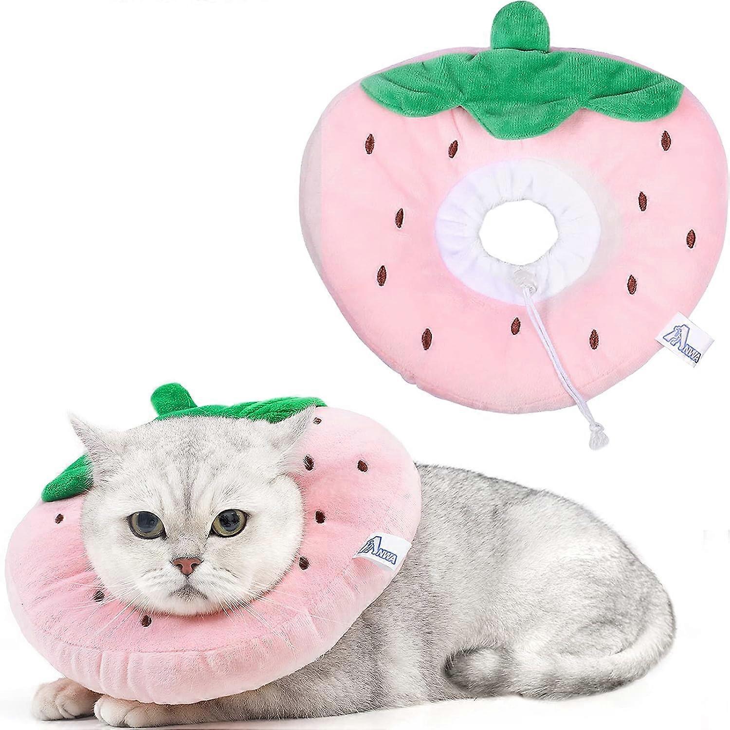 Adjustable Cat Cone Collar Soft, Cat Recovery Collar(Strawberry, Medium (7-18 lbs))