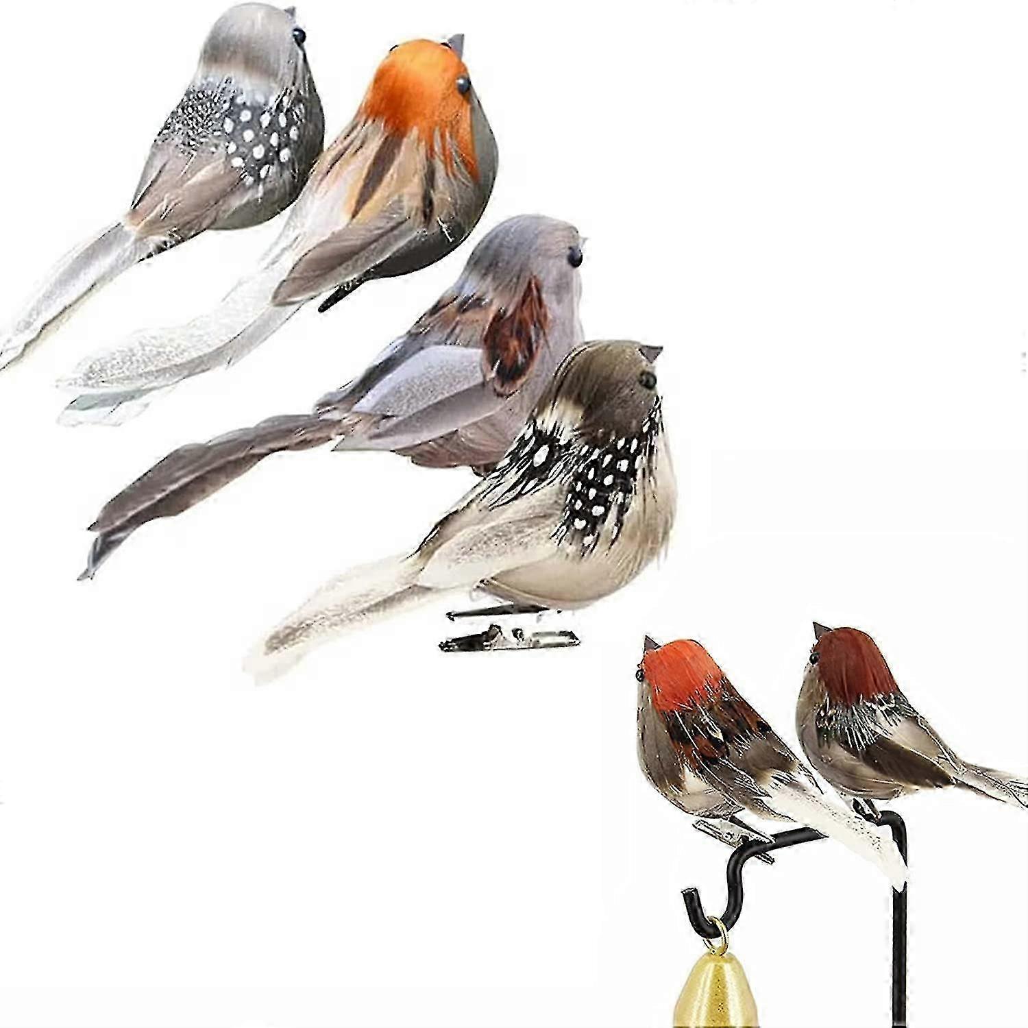Artificial feather birds, 4-piece set, can be used as educational tools, suitable for both indoor and outdoor use
