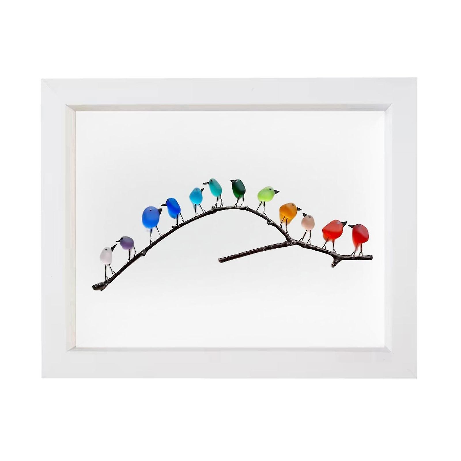 Sea Glass Rainbow Birds, Rainbow Birds On Branch, Rainbow Bird Wall Decor, Sea Glass Art