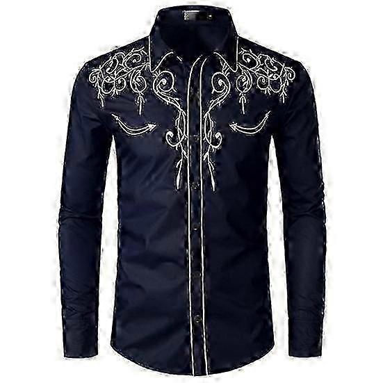 Casual Western Style Slim-Fit Embroidered Long Sleeve Lapel Collar Shirt Top