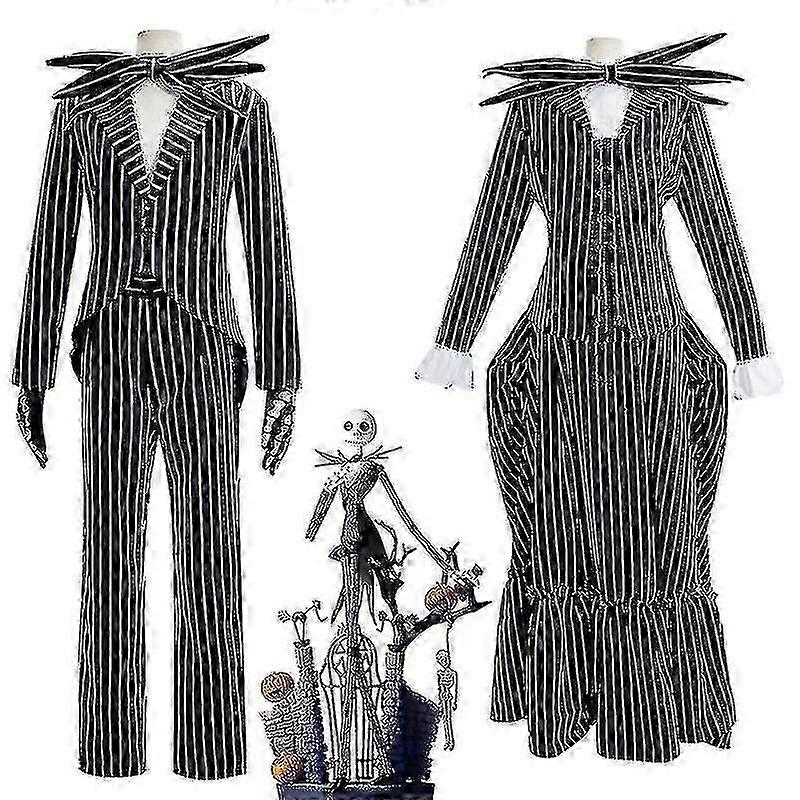 High Quality Jack Skellington Cosplay Costume Pumpkin King Suit Halloween Fancy Dress Carnival Costume For Adults Children
